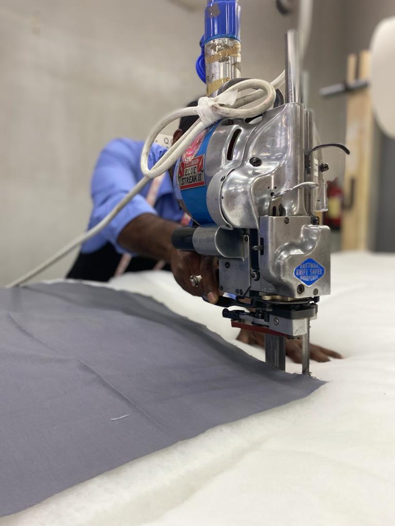 في هذه المرحلة ، نبدأ بإختيار النسيج ، و قص القماش بآلة المخصصه ، وخياطة الملابس ، وتطريز الملابس إذا احتاج التصميم