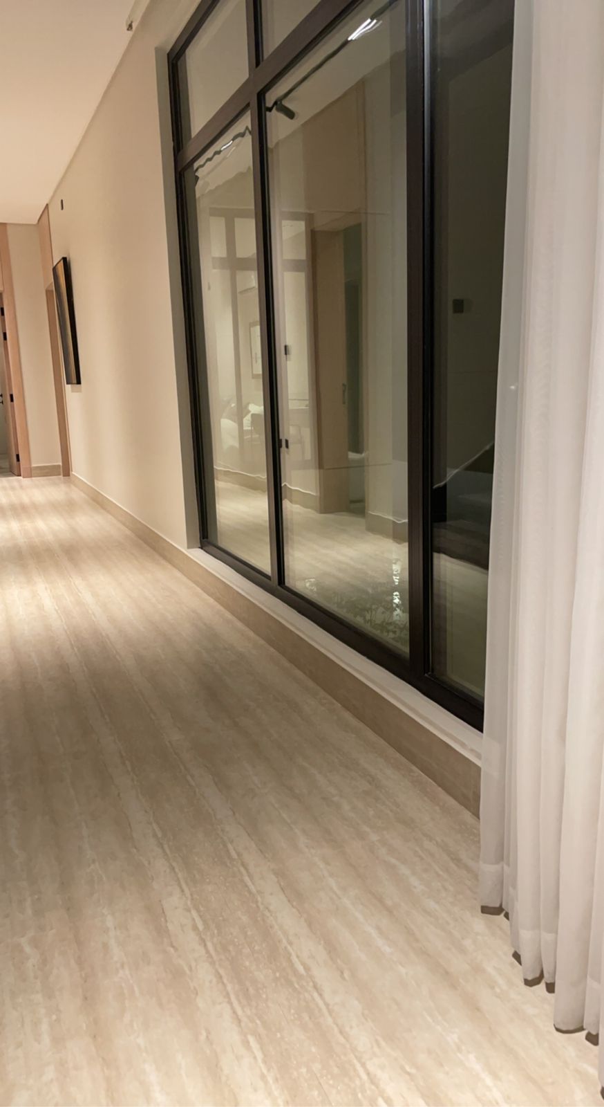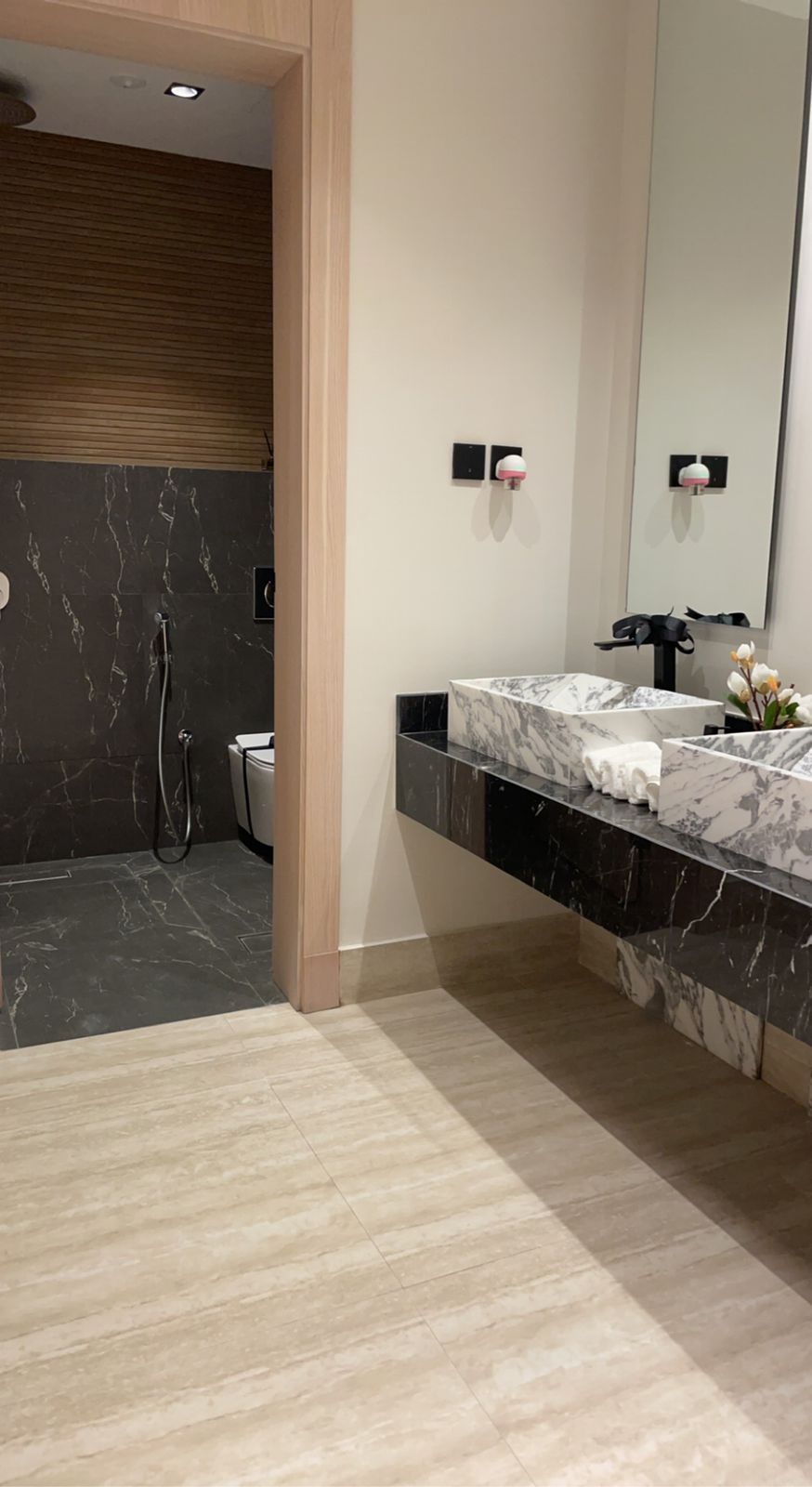 البلاط المستخدم هو لايت قري 80×80, نانو دارك 60×60, خشبي 40×80 و شرائح خشبي 11.2×90
